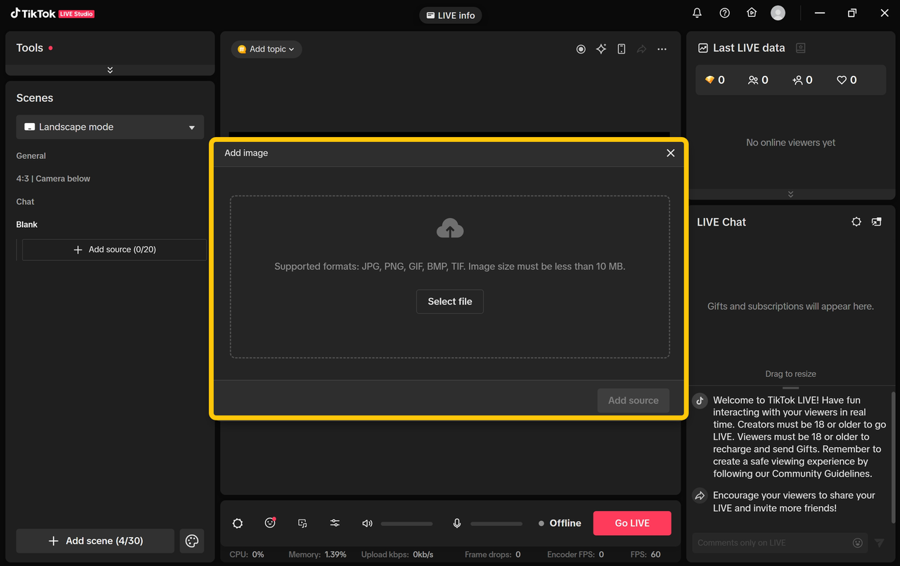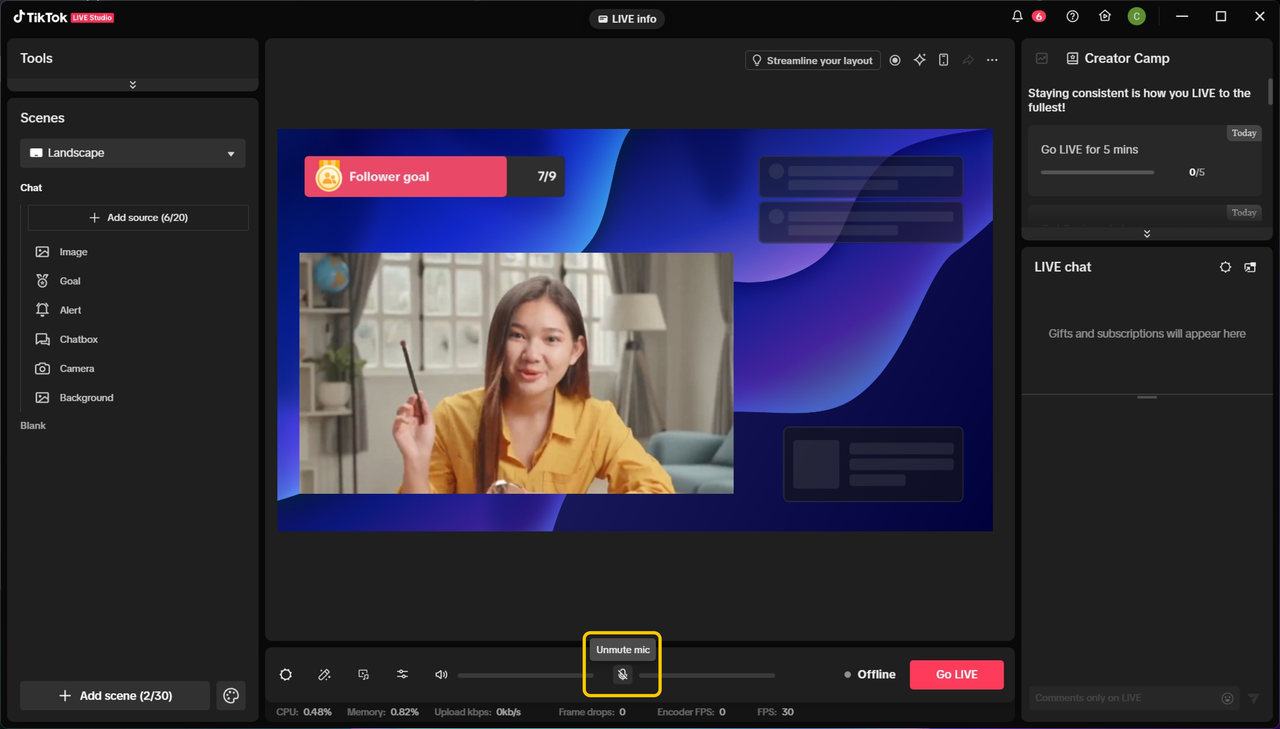 如果您不是 TikTok 行動應用程式上的直播主,就可能無法使用 LIVE Studio 進行直播。 不用擔心,申請很容易。請參閱申請直播使用權以瞭解詳情。 |