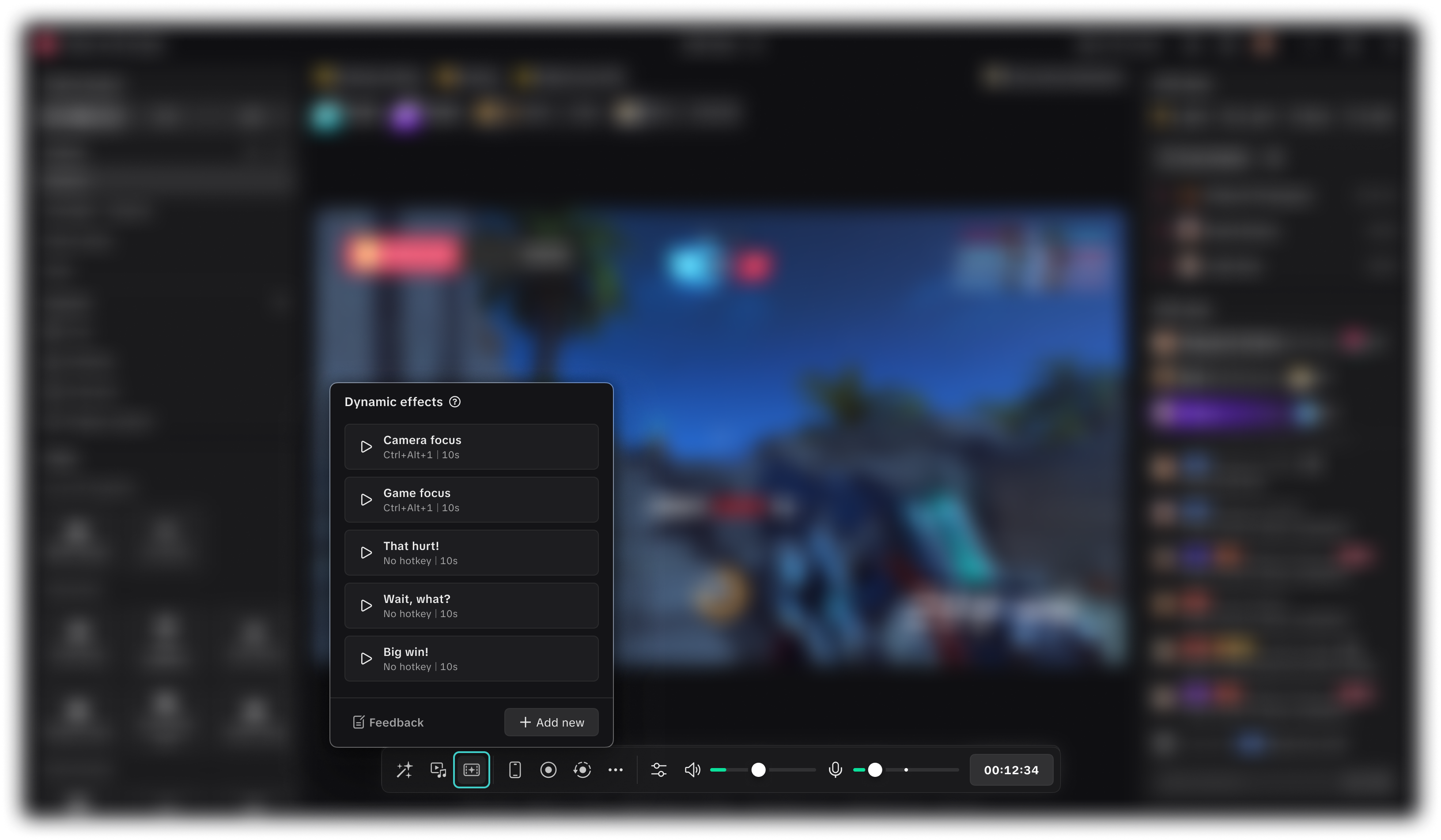 動態特效是結合了多種特效的強大一鍵式組合,讓您能立即為直播增添電影般的風格。結合版面變更、影片濾鏡、音效和相機特效,以突顯您的最佳反應、創造有趣的時刻,並讓觀眾持續聚焦於精彩動作。