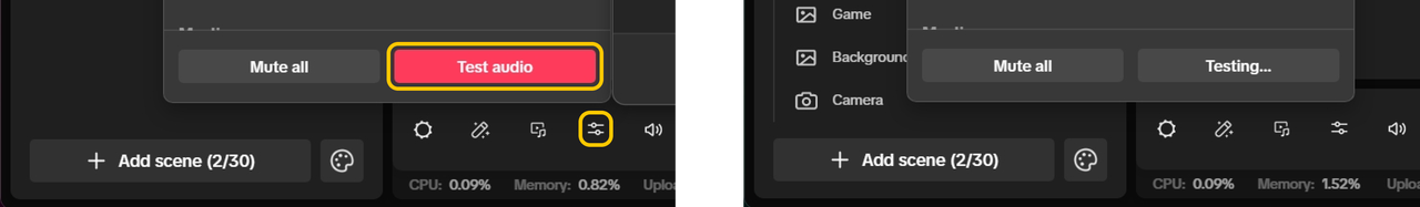現場測試麥克風,確保您的聲音清晰流暢,讓觀眾享有優質的體驗。 測試音訊:
