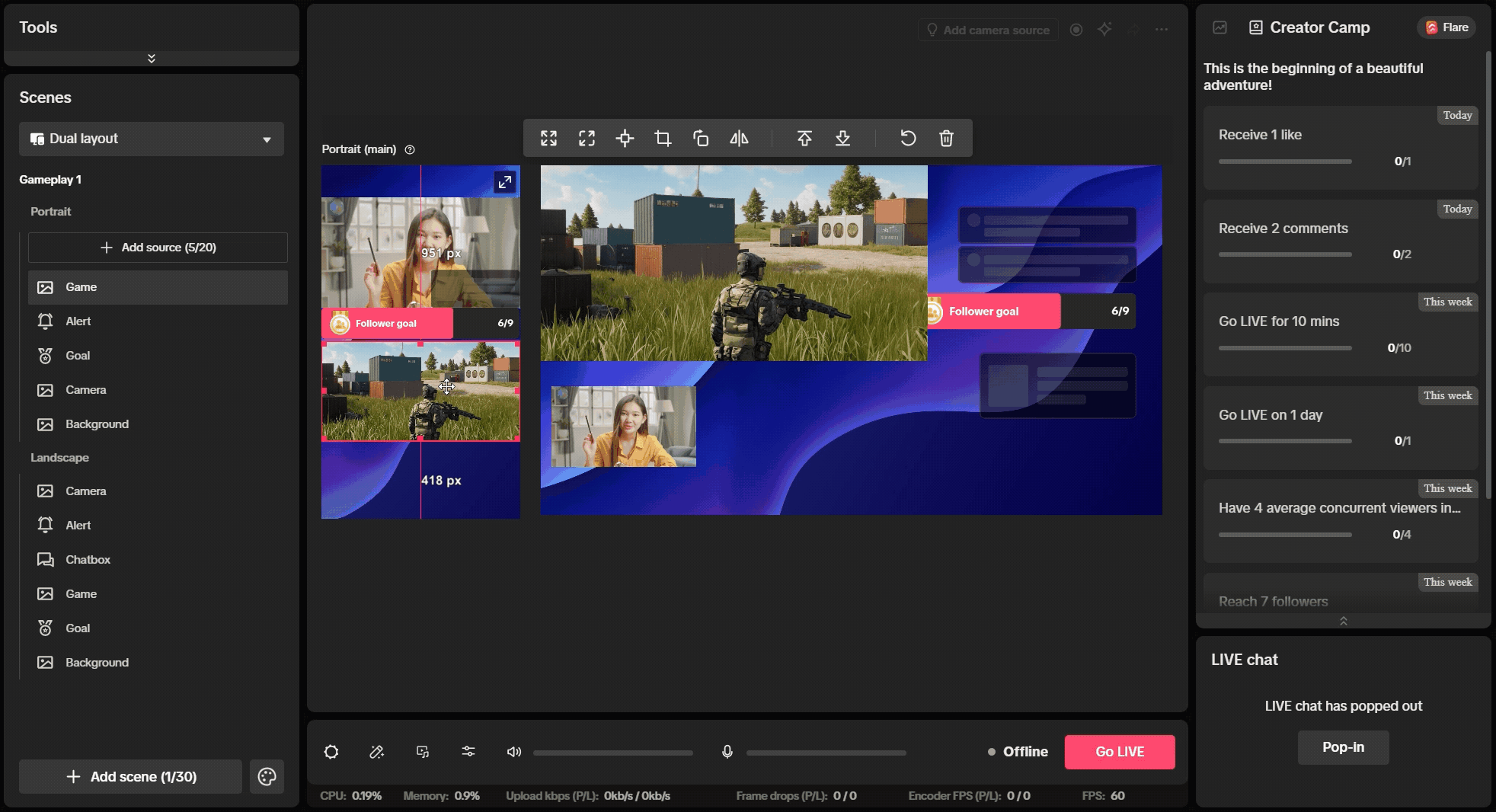 配置好您的場景、來源和音訊之後,在開始直播前快速預覽一遍,以進行仔細檢查和最後的調整。